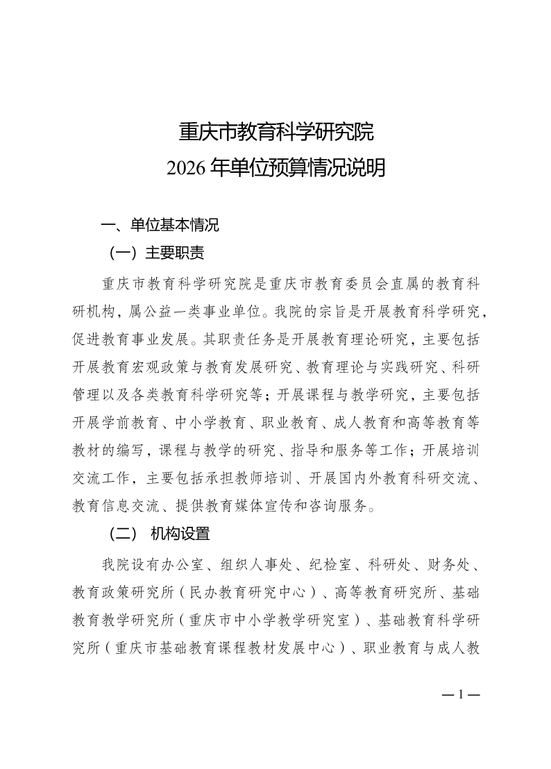 重庆市教育科学研究院2026年单位预算情况说明